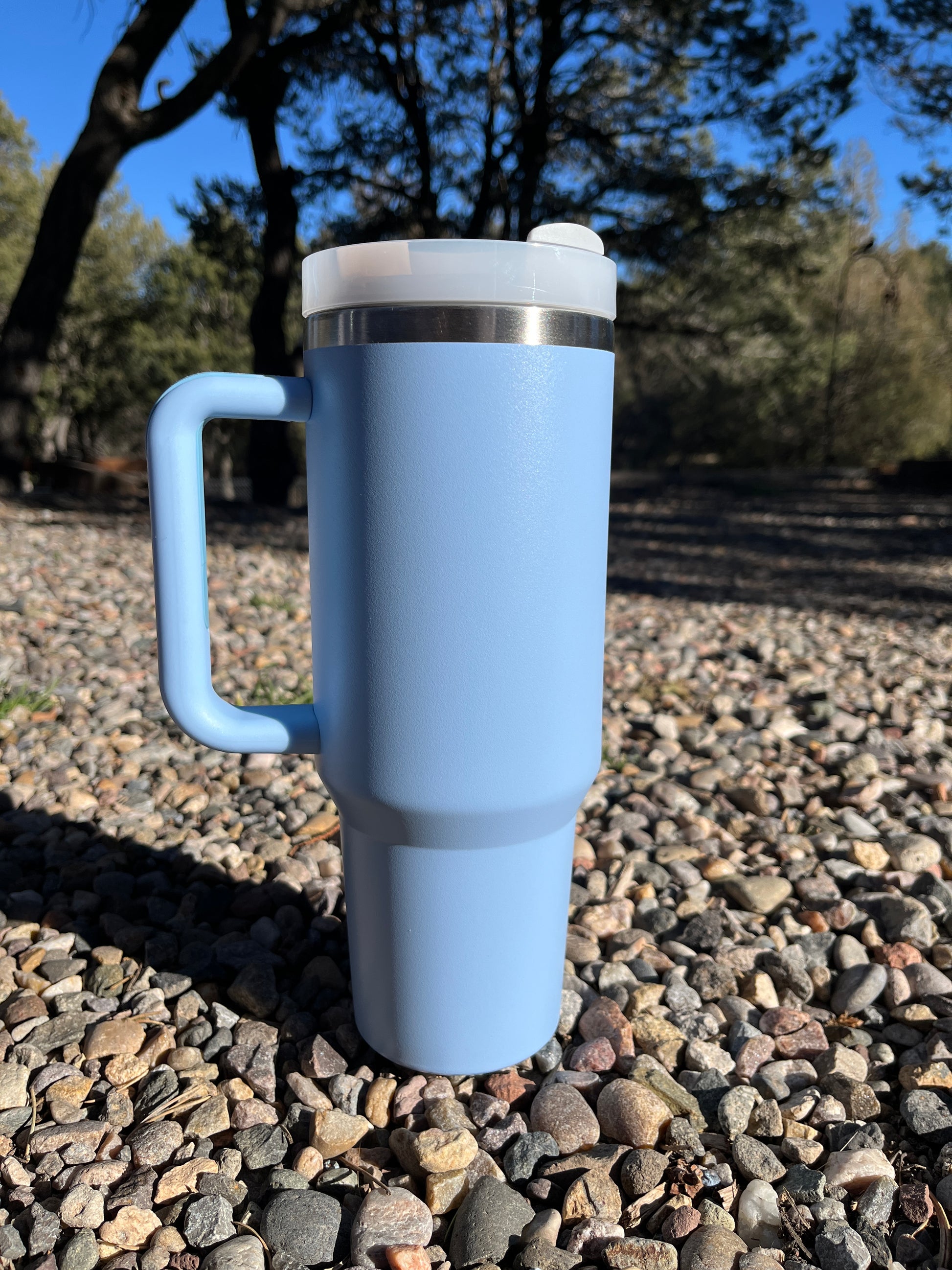 This 40-ounce tumbler with handle and straw is the perfect gift for any occasion.